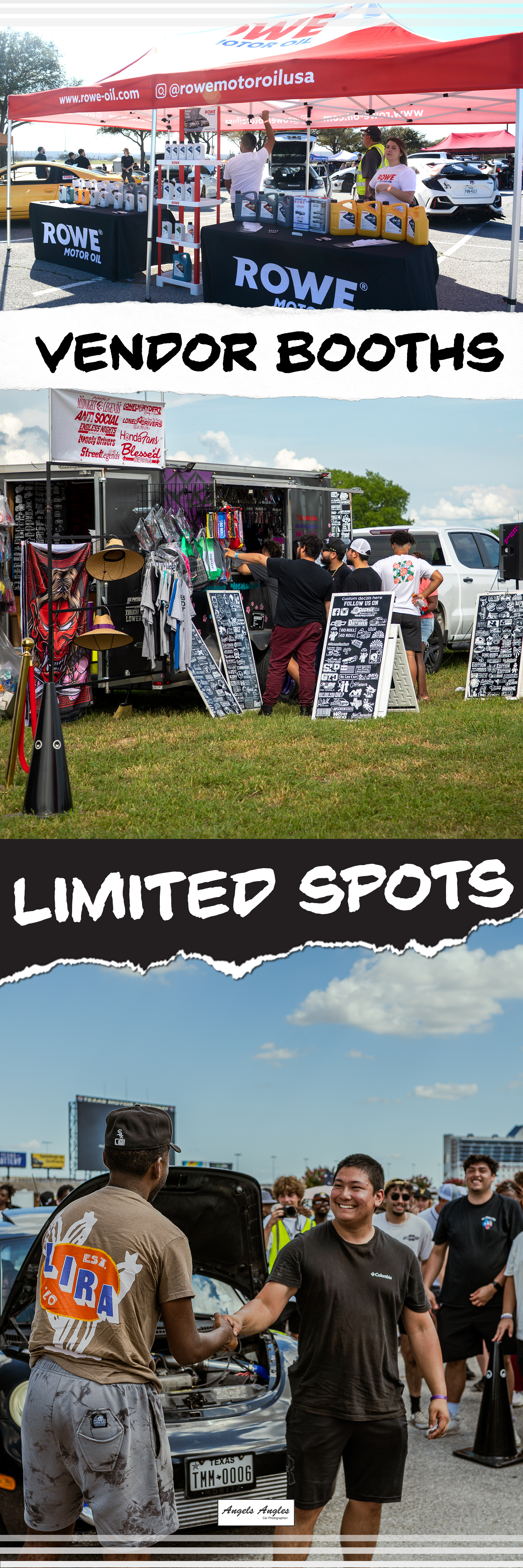 You will be along the infield road; the only walking area to go back and forth in the center of the venue. We have a limited number of preferred vendor spots that are closest to the skid pad.